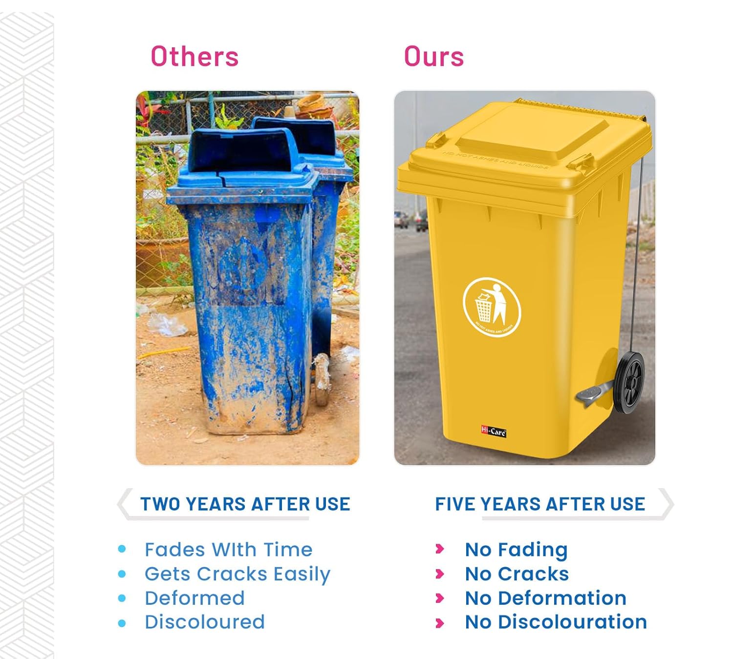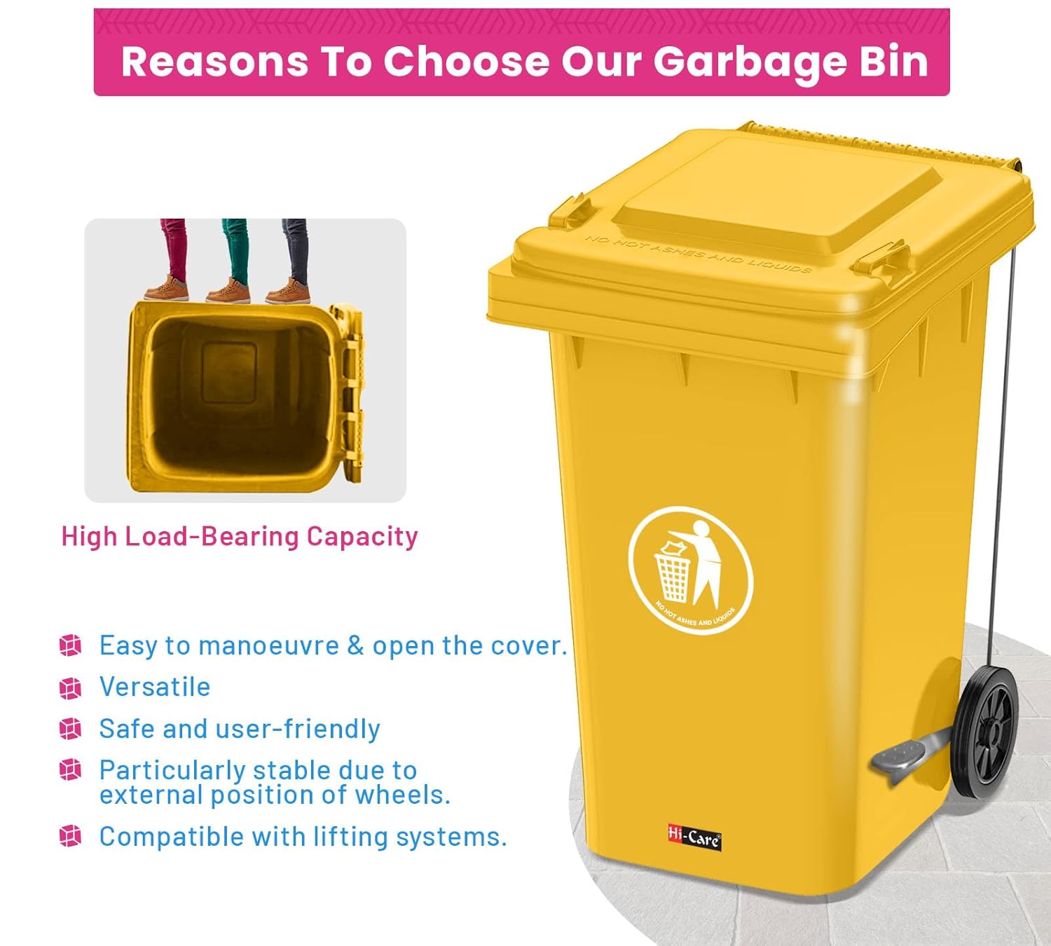 - MULTI-PURPOSE: We offer industry-standard garbage bin with wheels that are widely used by industries for multiple uses such as storage box. Municipalities, hospitals, airports, Co-operative Housing Societies, and parks. Commercial and Residential Complexes, Hotels, Restaurants, etc.
