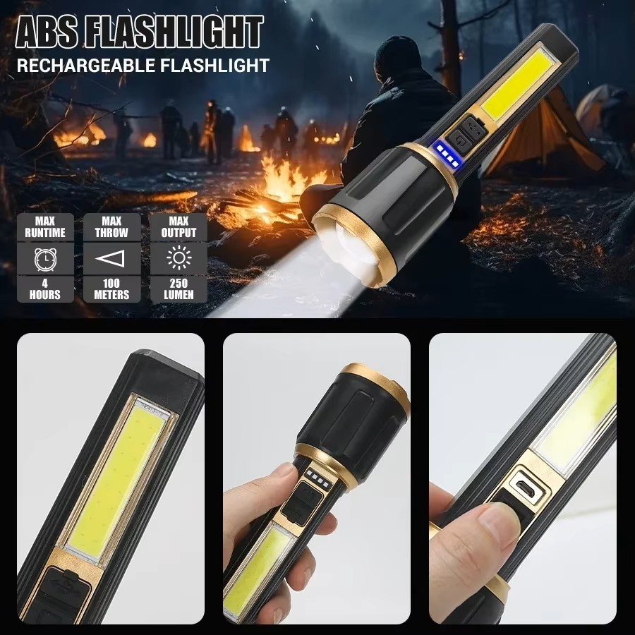 🔦 Side Flash Function: Additional COB side light for flood lighting or area illumination.